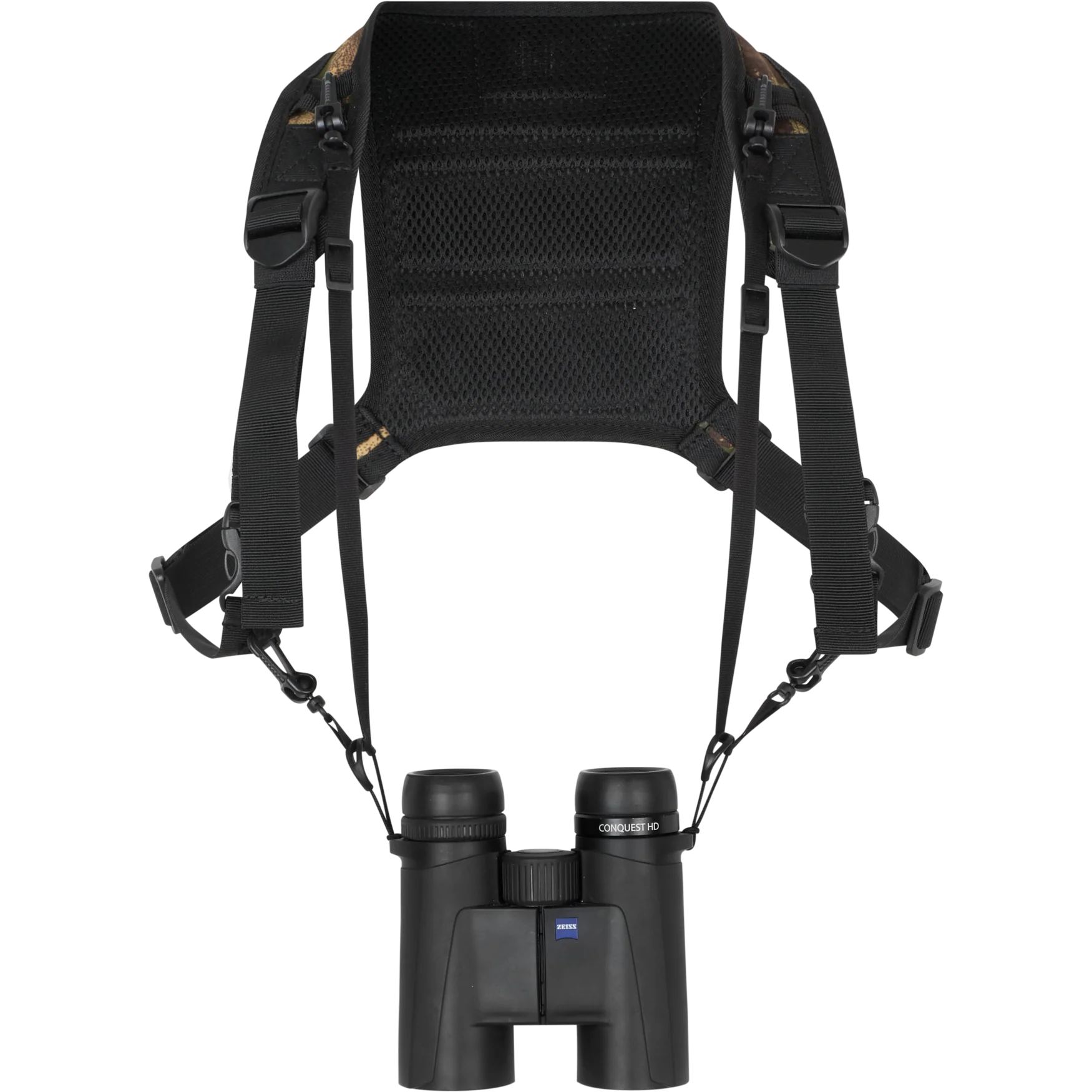 Deer Stalker camo-kikarrem AXIS MSP®Forest från Härkila är en smart och bekväm lösning för att bära din handkikare under långa dagar i terrängen. Den håller kikaren tryggt mot bröstet, vilket förhindrar att den studsar eller slår mot kroppen när du rör dig aktivt.