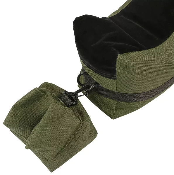 Påsarna kan enkelt fyllas med sand, Flamingo-kulor eller annat valfritt material och försluts med slitstark kardborre som håller innehållet ordentligt på plats under hela passet. Setet inkluderar både ett främre och ett bakre stöd, vilket ger en komplett lösning för att förbättra skjutprestandan.